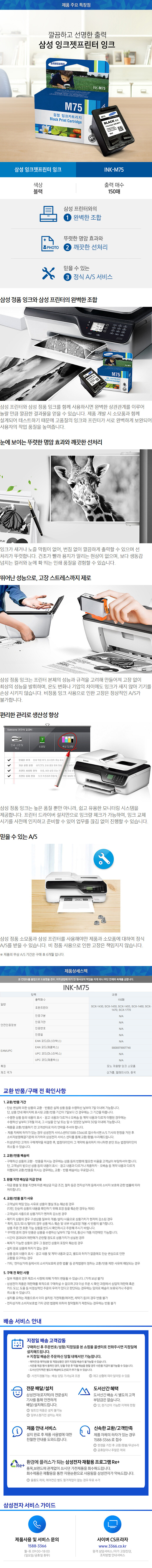 삼성전자 INK-M75 잉크젯프린터 잉크 블랙 150매