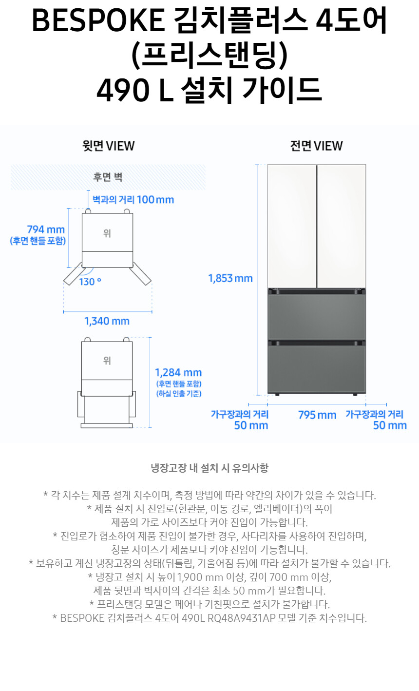 삼성전자 BESPOKE 김치플러스 4도어 김치냉장고 RQ49DB94H2AP