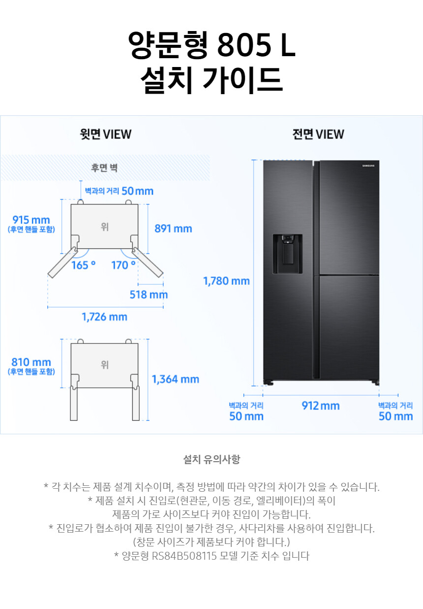 삼성전자 양문형 냉장고 3도어 RS80B5190B4